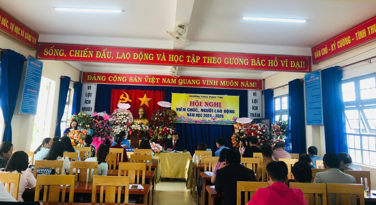 Hội nghị Viên chức, Người lao động tại Trường THCS Phúc Thọ là một sự kiện quan trọng, diễn ra hàng năm nhằm tạo ra một không gian dân chủ để tất cả cán bộ, giáo viên và nhân viên cùng nhau thảo luận, đánh giá hoạt động và đề xuất giải pháp cho năm học tiếp theo. Sự kiện này không chỉ thể hiện tinh thần dân chủ mà còn mang lại hiệu quả cao trong công tác quản lý và giảng dạy.